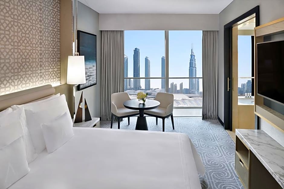 Similar to the Deluxe Boulevard View King Rooms across almost every facet, the Superior Boulevard View King Rooms are additionally privileged with unique views of Boulevard and Partial Burj Khalifa which can be enjoyed from a private balcony. The allure of these refined spaces is superbly enhanced by tasteful appointments and luxurious décor, and can be comfortably shared with friends and family via a connection to an adjacent room in some instances.